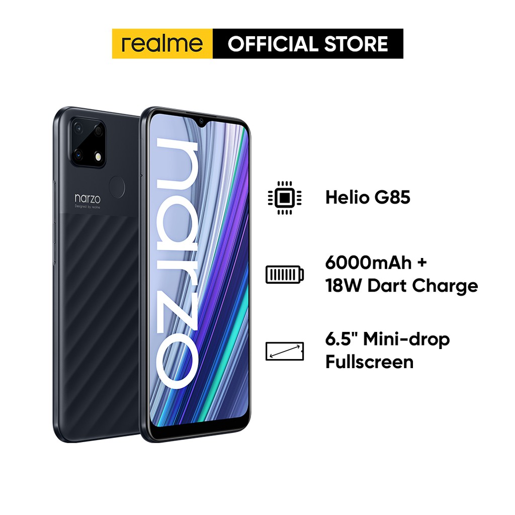 Realme narzo 30a android smartphone. Features 6.5″ display, mediatek helio g85 chipset, 6000 mah battery, 64 gb storage, 4 gb ram. All battery life data is from realme lab. Released 2021, march 05 205g, 9.8mm thickness android 10, realme ui 32gb/64gb storage, microsdxc. Actual results vary by environment. The narzo 30a reverse charging function requires an otg cable, which must be.